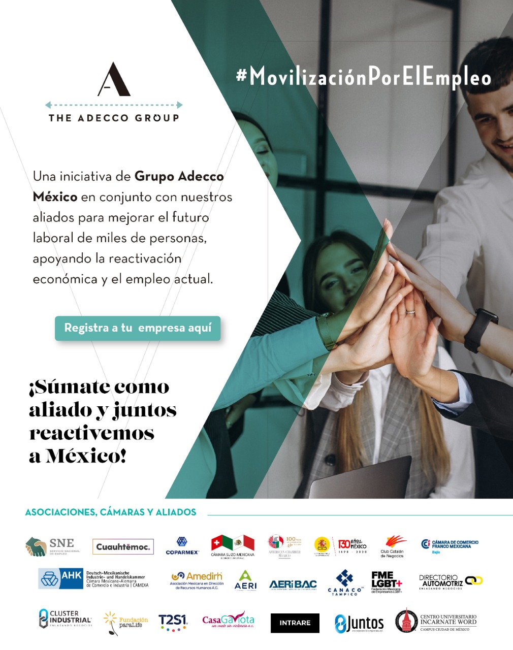 Movilización por el Empleo es una iniciativa mundial, surgida a raíz de la pandemia, y en México está integrada, además de la Adecco y la alcaldía Cuauhtémoc, por el Servicio Nacional del Empleo de la Secretaría del Trabajo y Previsión Social, la Confederación Patronal de la República Mexicana (Coparmex), Cámara Suizo-Mexicana de Comercio e Industria, American Chamber, Cámara Española de Comercio, Club de Empresarios Catalanes en México, Cámara Mexico – Alemana de comercio e industria, la Federación Mexicana de Empresarios LGBT y Centro Universitario Incarnate Word, entre otros.
